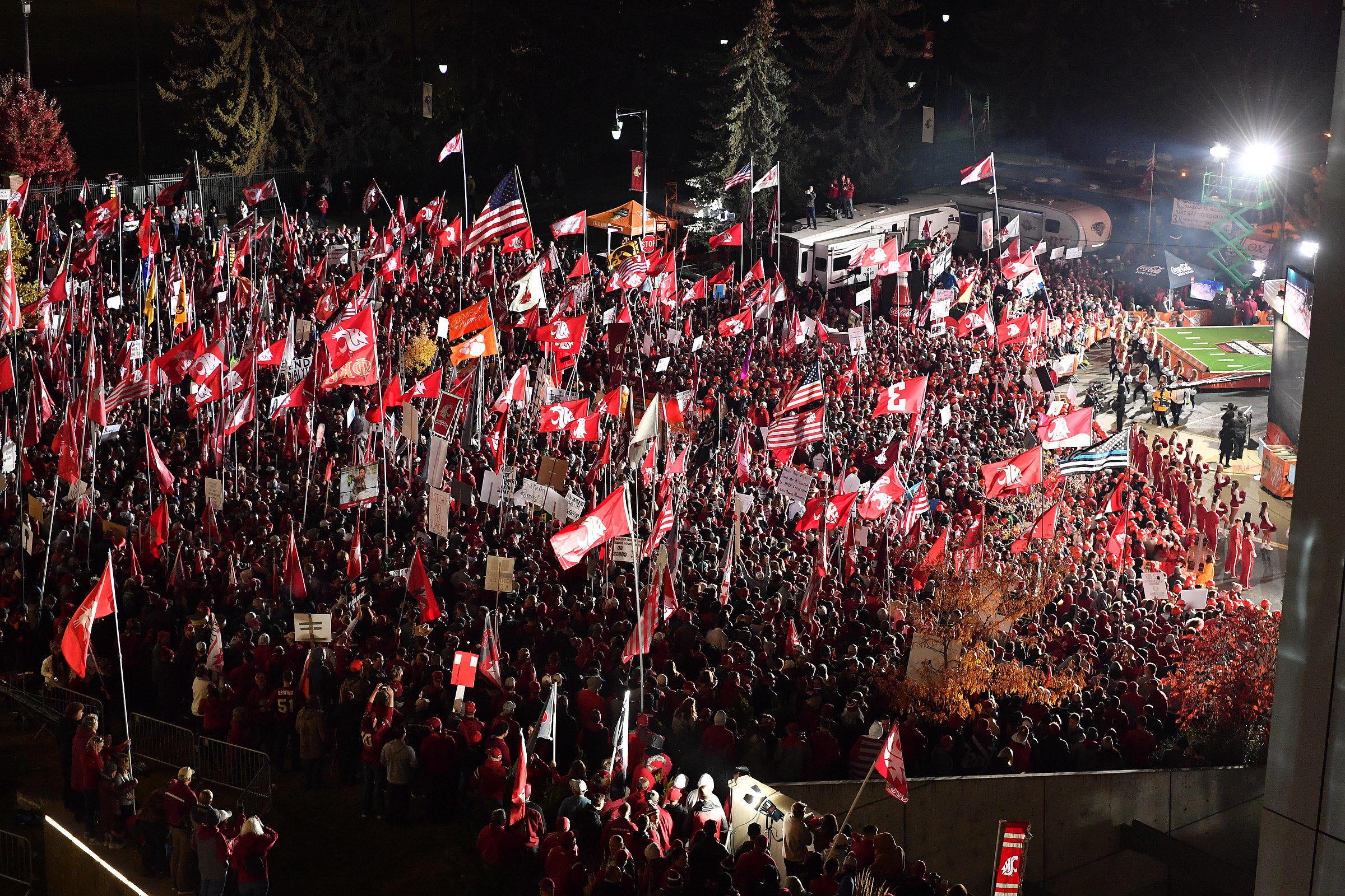 A state of emergency was declared in Pullman before the ESPN College Gameday bus even rolled into town. A sea of crimson flags flew high and proud on the corner Ferdinand’s Lane and Stadium Way one very early Saturday morning. Lee Corso donned the Butch T. Cougar head as the freshly ranked No. 25 Cougars hosted the No. 12 Oregon Ducks. After taking a commanding 27-0 lead into the half, the crowd started to feel anxious as the Ducks drew closer. Up by seven with 3:40 to go in the game on the Ducks 22 yard line, Pullman’s folk lore hero Gardner Minshew and his trademark bushy upper lip hair dropped back, threw the ball over the middle to a streaking Dezmon Patmon and Tim Brando said it best before a swarm of Coug fans stormed the field following the 34-20 win just minutes later.