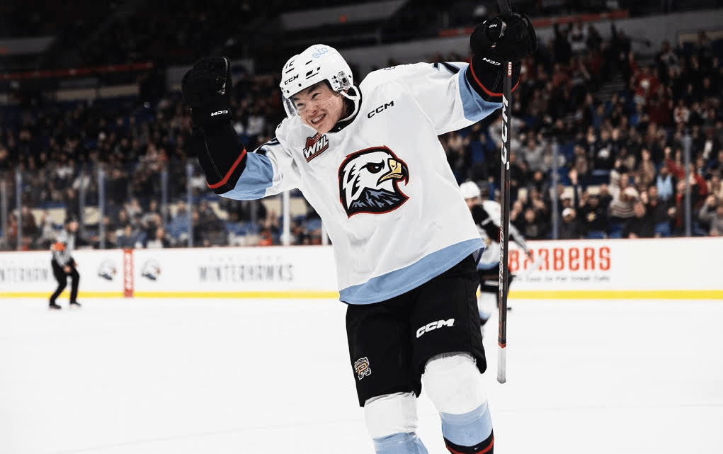 The match at Veterans Memorial Coliseum saw the Kamloops taking an early advantage. At 13:27 in the first period, the Blazers would strike. Kyle Masters would create the opportunity by cutting through the middle of the defense. After running out of space, Masters would turn and center a pass that would deflect off of Logan Stankoven, and find Matthew Seminoff. Seminoff would whip a shot that would ring off the iron. However, upon replay review, Semioff’s shot hit the crossbar at the back of the net! Meaning that the Blazers would take a 1-0 lead.