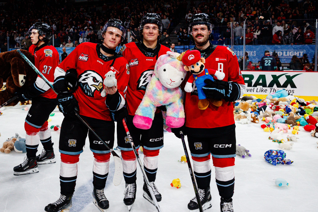 The Portland Winterhawks split their weekend games against the Vancouver Giants. On Saturday, the Winterhawks knocked down Vancouver by a score of 7-2. Then on Sunday, Vancouver got their revenge. The Giants would defeat Portland 5-2, on the Les Schwab Teddy Bear Toss night. The Winterhawks donated 16,973 stuffed animals, and now sit in 6th place in the Western Conference. Here are three takeaways from the Winterhawk’s two games against Vancouver.