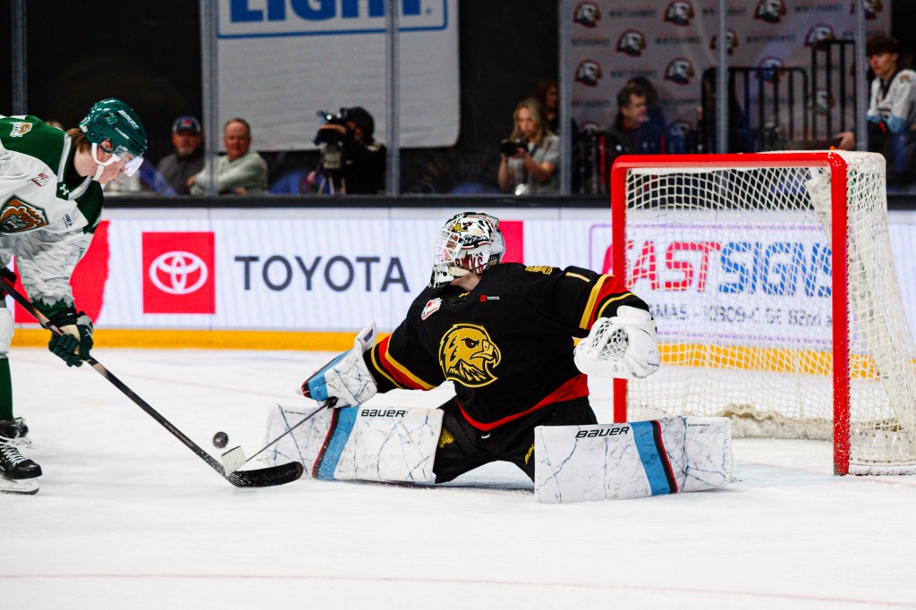 In the third period, Everett began to pull away. With 14:37 on the clock, the Silvertips dumped and chased the puck around the boards again. Štěbeták would come out to play the puck, but with pressure quickly approaching, he would quickly send the puck towards the opposite corner. Before it reached the boards, Shea Busch would intercept the puck just above the goal line extended. While Štěbeták was retreating back to the net, Busch would send the puck back on goal. Busch’s shot would hit Štěbeták’s side and trickle into the back of the net. Busch’s goal would make the score 4-0 Silvertips with 14:37 remaining in regulation.
